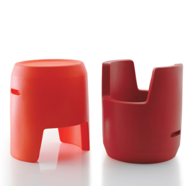 DODO Banqueta, mesa baja, contenedor. Realizado en polietileno en molde rotacional. Diseñado para Casamania, 2003. |