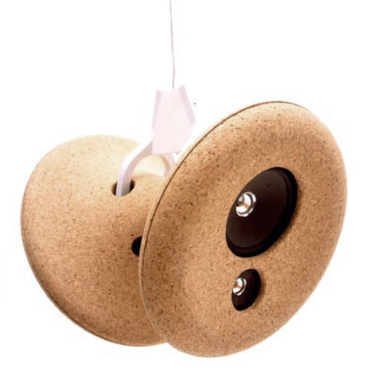 | Cork-fi. Familia de 3 tipologias de altoparlantes realizada en corcho macizo. Realizada para muestra Hall 02, Salone del Mobile. Via Tortona, Milano 2002. |