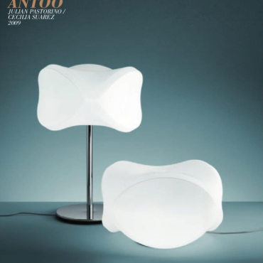 ANTOO Familia de lamparas - suspension, plafon, mesa y tierra. Realizada en vidrio soplado en molde y baño opalino. Diametro aprox: 44 cm, h: 27 cm. Diseñado para Fontana Arte, 2009. |