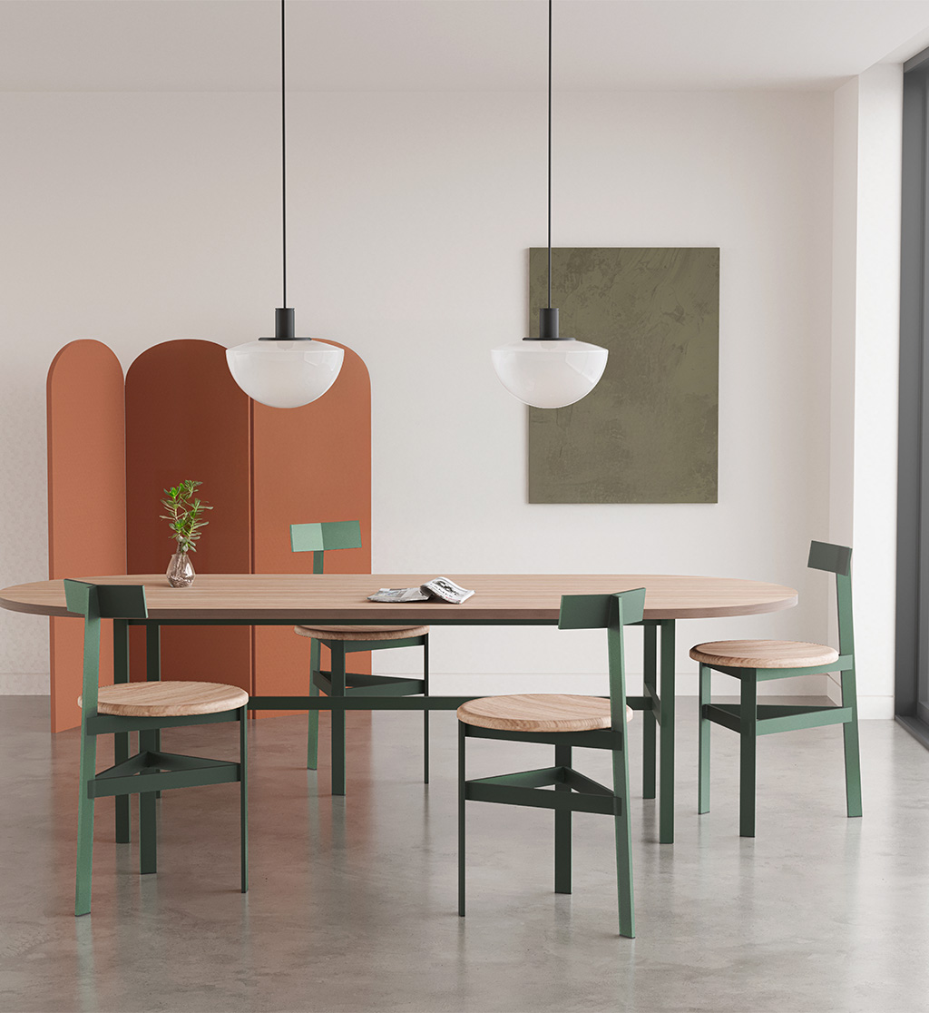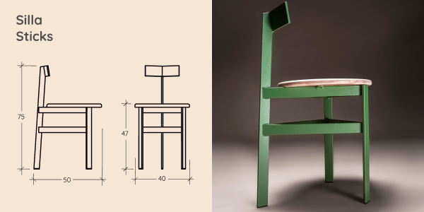 Compacta y versátil, Silla Sticks conjuga una silueta que remite al origami con la solidez de una estructura de hierro pintado al horno. El asiento en lenga maciza (o tapizado antimanchas) aporta calidez; su escala pensada para interiores y exteriores la hace ideal donde se busca diseño sin recargar el espacio.