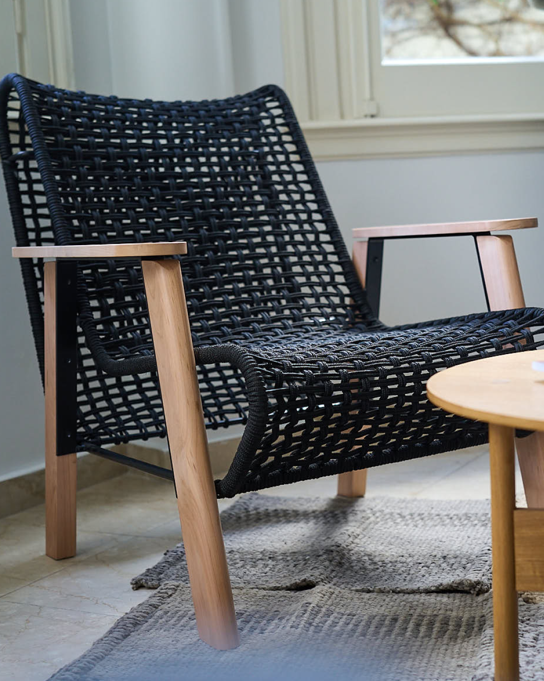 Diseñado para interiores relajados y espacios semicubiertos como galerías o quinchos, este sillón combina comodidad y carácter. Su estructura de generosas dimensiones, pero apariencia liviana y semitransparente, aporta presencia sin recargar el ambiente. La trama abierta proporciona confort sin necesidad de almohadones.